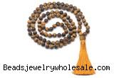 GMN8436 8mm, 10mm matte yellow tiger eye 27, 54, 108 beads mala necklace with tassel $2.31 - $2.72