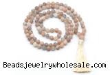 GMN8440 8mm, 10mm matte sunstone 27, 54, 108 beads mala necklace with tassel $2.72 - $3.20