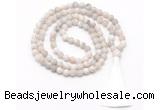 GMN8444 8mm, 10mm matte white crazy agate 27, 54, 108 beads mala necklace with tassel $2.04 - $2.40