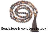 GMN8446 8mm, 10mm matte bamboo leaf agate 27, 54, 108 beads mala necklace with tassel $2.04 - $2.40