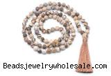 GMN8452 8mm, 10mm matte grey picture jasper 27, 54, 108 beads mala necklace with tassel $1.63 - $1.92