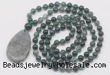 GMN5216 Hand-knotted 8mm, 10mm moss agate 108 beads mala necklace with pendant