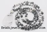 GMN5225 Hand-knotted 8mm, 10mm black & white jasper 108 beads mala necklace with pendant
