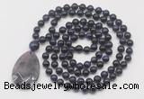 GMN5234 Hand-knotted 8mm, 10mm dumortierite 108 beads mala necklace with pendant