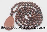 GMN5220 Hand-knotted 8mm, 10mm red jasper 108 beads mala necklace with pendant