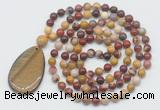 GMN5238 Hand-knotted 8mm, 10mm mookaite 108 beads mala necklace with pendant