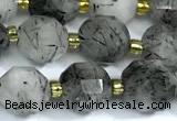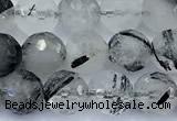 CRU1071 15 inches 8mm faceted round black rutilated quartz beads