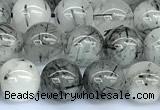 CRU1054 15 inches 10mm round black rutilated quartz beads