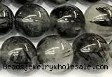 CRU1068 15 inches 12mm round black rutilated quartz beads