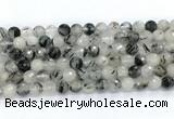 CRU1091 15.5 inches 6mm faceted round black rutilated quartz gemstone beads