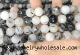 CRU1072 15 inches 10mm faceted round black rutilated quartz beads