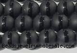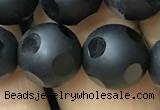 CAA2462 15.5 inches 14mm carved round matte black agate beads