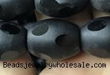 CAA2465 15.5 inches 12*16mm carved rice matte black agate beads