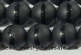 CAA3652 15.5 inches 10mm round matte & carved black agate beads