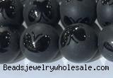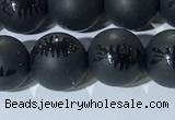 CAA3653 15.5 inches 12mm round matte & carved black agate beads