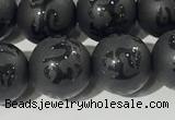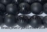 CAA3662 15.5 inches 10mm round matte & carved black agate beads