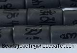 CAA3684 15.5 inches 8*16mm tube matte & carved black agate beads