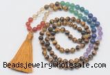 GMN6224 Knotted 7 Chakra 8mm, 10mm yellow tiger eye 108 beads mala necklace with tassel & charm