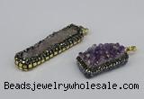 CGP3382 10*35mm - 15*50mm rectangle plated druzy amethyst pendants