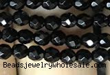 CAA2425 15.5 inches 4mm faceted round black agate beads wholesale