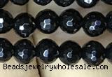 CAA2430 15.5 inches 14mm faceted round black agate beads wholesale
