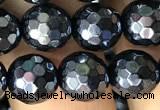 CAA3558 15.5 inches 12mm faceted round AB-color black agate beads