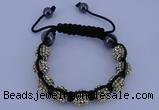 CFB555 10mm round rhinestone with hematite beads adjustable bracelet
