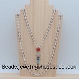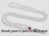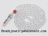 Details: Hand-knotted quartz mala necklaces: 108 8mm/10mm round white crystal beads with 1 12mm red agate guru bead and white crystal pendant (you can choose different pendants) Item: GMN1455 Material: No.1(8mm: 108 8mm white crystal beads, 12mm red agate guru bead & white crystal pendant No.2(10mm: 108 10mm white crystal beads, 12mm red agate guru bead & white crystal pendant Color: See image Length (inch): Necklace length: No.1(8mm: approx 37 - 40 inches (Not including guru bead & pendant) No.2(10mm: approx 46 - 50 inches (Not including guru bead & pendant) Pendants: #1 - #8: approx 20*50mm – 22*55mm #9 - #23: approx 16*50mm – 16*55mm #24 - #30: approx 17*55mm – 17*58mm #31 - #39: approx 25*68mm – 25*70mm Quantity Discount Pricing: 1 – 4: None 5 – 49: 95% 50 – 99: 90% 100+: 85% This mala is available in both 8mm and 10mm beads, The listed price is for 1 piece 8mm mala necklace