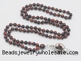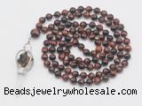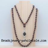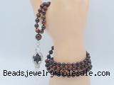 Details: Hand-knotted tiger eye mala necklaces: 108 8mm/10mm round grade AA red tiger eye beads with 1 12mm guru bead and tiger eye & white crystal pendant (you can choose different pendants) Item: GMN1498 Material: No.1(8mm: 108 8mm red tiger eye beads, 12mm guru bead & white crystal pendant No.2(10mm: 108 10mm red tiger eye beads, 12mm guru bead & white crystal pendant Color: See image Length (inch): Necklace length: No.1(8mm: approx 37 - 40 inches (Not including guru bead & pendant) No.2(10mm: approx 46 - 50 inches (Not including guru bead & pendant) Pendants: #1 - #8: approx 20*50mm – 22*55mm #9 - #23: approx 16*50mm – 16*55mm #24 - #30: approx 17*55mm – 17*58mm #31 - #39: approx 25*68mm – 25*70mm Quantity Discount Pricing: 1 – 4: None 5 – 49: 95% 50 – 99: 90% 100+: 85% This mala is available in both 8mm and 10mm beads, The listed price is for 1 piece 8mm mala necklace