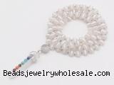 Details: Hand-knotted agate mala necklaces: 108 8mm/10mm matte round Tibetan agate beads with 1 12mm white crazy lace agate guru bead and white crystal pendant (you can choose different pendants) Item: GMN1507 Material: No.1(8mm: 108 8mm matte Tibetan agate beads, 12mm white crazy lace agate guru bead & white crystal pendant No.2(10mm: 108 10mm matte Tibetan agate beads, 12mm white crazy lace agate guru bead & white crystal pendant Color: See image Length (inch): Necklace length: No.1(8mm: approx 37 - 40 inches (Not including guru bead & pendant) No.2(10mm: approx 46 - 50 inches (Not including guru bead & pendant) Pendants: #1 - #8: approx 20*50mm – 22*55mm #9 - #23: approx 16*50mm – 16*55mm #24 - #30: approx 17*55mm – 17*58mm #31 - #39: approx 25*68mm – 25*70mm Quantity Discount Pricing: 1 – 4: None 5 – 49: 95% 50 – 99: 90% 100+: 85% This mala is available in both 8mm and 10mm beads, The listed price is for 1 piece 8mm mala necklace