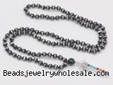 Mala necklace is worn on the neck or wrist while not in use. It may also serve as a nice accessory in everyday life or on some special occasions. Whether as a calming meditation guide or a beautiful, this necklace will be a great addition to your spiritual practice.