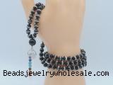 Details: Hand-knotted agate mala necklaces: 108 8mm/10mm faceted round Tibetan agate beads with 1 12mm black agate guru bead and white crystal pendant (you can choose different pendants) Item: GMN1514 Material: No.1(8mm: 108 8mm faceted Tibetan agate beads, 12mm black agate guru bead & white crystal pendant No.2(10mm: 108 10mm faceted Tibetan agate beads, 12mm black agate guru bead & white crystal pendant Color: See image Length (inch): Necklace length: No.1(8mm: approx 37 - 40 inches (Not including guru bead & pendant) No.2(10mm: approx 46 - 50 inches (Not including guru bead & pendant) Pendants: #1 - #8: approx 20*50mm – 22*55mm #9 - #23: approx 16*50mm – 16*55mm #24 - #30: approx 17*55mm – 17*58mm #31 - #39: approx 25*68mm – 25*70mm Quantity Discount Pricing: 1 – 4: None 5 – 49: 95% 50 – 99: 90% 100+: 85% This mala is available in both 8mm and 10mm beads, The listed price is for 1 piece 8mm mala necklace