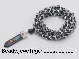 Details: Hand-knotted agate mala necklaces: 108 8mm/10mm faceted round Tibetan agate beads with 1 12mm black agate guru bead and obsidian pendant (you can choose different pendants) Item: GMN1516 Material: No.1(8mm: 108 8mm faceted Tibetan agate beads, 12mm black agate guru bead & obsidian pendant No.2(10mm: 108 10mm faceted Tibetan agate beads, 12mm black agate guru bead & obsidian pendant Color: See image Length (inch): Necklace length: No.1(8mm: approx 37 - 40 inches (Not including guru bead & pendant) No.2(10mm: approx 46 - 50 inches (Not including guru bead & pendant) Pendants: #1 - #8: approx 20*50mm – 22*55mm #9 - #23: approx 16*50mm – 16*55mm #24 - #30: approx 17*55mm – 17*58mm #31 - #39: approx 25*68mm – 25*70mm Quantity Discount Pricing: 1 – 4: None 5 – 49: 95% 50 – 99: 90% 100+: 85% This mala is available in both 8mm and 10mm beads, The listed price is for 1 piece 8mm mala necklace