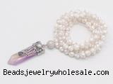 Details: Hand-knotted agate mala necklaces: 108 8mm/10mm faceted round Tibetan agate beads with 1 12mm white crazy lace agate agate guru bead and agate pendant (you can choose different pendants) Item: GMN1517 Material: No.1(8mm: 108 8mm faceted Tibetan agate beads, 12mm white crazy lace agate guru bead & agate pendant No.2(10mm: 108 10mm faceted Tibetan agate beads, 12mm white crazy lace agate guru bead & agate pendant Color: See image Length (inch): Necklace length: No.1(8mm: approx 37 - 40 inches (Not including guru bead & pendant) No.2(10mm: approx 46 - 50 inches (Not including guru bead & pendant) Pendants: #1 - #8: approx 20*50mm – 22*55mm #9 - #23: approx 16*50mm – 16*55mm #24 - #30: approx 17*55mm – 17*58mm #31 - #39: approx 25*68mm – 25*70mm Quantity Discount Pricing: 1 – 4: None 5 – 49: 95% 50 – 99: 90% 100+: 85% This mala is available in both 8mm and 10mm beads, The listed price is for 1 piece 8mm mala necklace