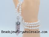 Mala necklace is worn on the neck or wrist while not in use. It may also serve as a nice accessory in everyday life or on some special occasions. Whether as a calming meditation guide or a beautiful, this necklace will be a great addition to your spiritual practice.
