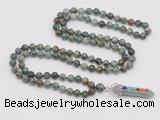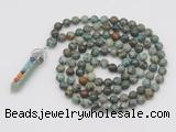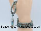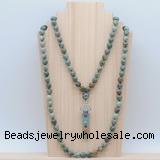 Details: Hand-knotted turquoise mala necklaces: 108 8mm/10mm round African turquoise beads with 1 12mm guru bead and green aventurine pendant (you can choose different pendants) Item: GMN1548 Material: No.1(8mm: 108 8mm African turquoise beads, 12mm guru bead & green aventurine pendant No.2(10mm: 108 10mm African turquoise beads, 12mm guru bead & green aventurine pendant Color: See image Length (inch): Necklace length: No.1(8mm: approx 37 - 40 inches (Not including guru bead & pendant) No.2(10mm: approx 46 - 50 inches (Not including guru bead & pendant) Pendants: #1 - #8: approx 20*50mm – 22*55mm #9 - #23: approx 16*50mm – 16*55mm #24 - #30: approx 17*55mm – 17*58mm #31 - #39: approx 25*68mm – 25*70mm Quantity Discount Pricing: 1 – 4: None 5 – 49: 95% 50 – 99: 90% 100+: 85% This mala is available in both 8mm and 10mm beads, The listed price is for 1 piece 8mm mala necklace