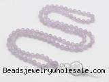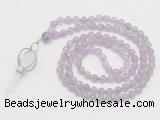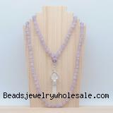 Details: Hand-knotted amethyst mala necklaces: 108 8mm/10mm round lavender amethyst gemstone beads with 1 12mm guru bead and white crystal pendant (you can choose different pendants) Item: GMN1552 Material: No.1(8mm: 108 8mm lavender amethyst beads, 12mm guru bead & white crystal pendant No.2(10mm: 108 10mm lavender amethyst beads, 12mm guru bead & white crystal pendant Color: See image Length (inch): Necklace length: No.1(8mm: approx 37 - 40 inches (Not including guru bead & pendant) No.2(10mm: approx 46 - 50 inches (Not including guru bead & pendant) Pendants: #1 - #8: approx 20*50mm – 22*55mm #9 - #23: approx 16*50mm – 16*55mm #24 - #30: approx 17*55mm – 17*58mm #31 - #39: approx 25*68mm – 25*70mm Quantity Discount Pricing: 1 – 4: None 5 – 49: 95% 50 – 99: 90% 100+: 85% This mala is available in both 8mm and 10mm beads, The listed price is for 1 piece 8mm mala necklace