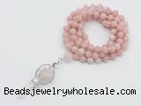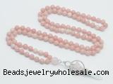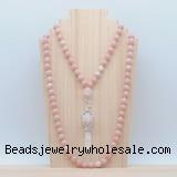 Details: Hand-knotted opal mala necklaces: 108 8mm/10mm round Chinese pink opal gemstone beads with 1 12mm rose quartz guru bead and rose quartz & white crystal pendant (you can choose different pendants) Item: GMN1553 Material: No.1(8mm: 108 8mm Chinese pink opal beads, 12mm rose quartz guru bead And rose quartz & white crystal pendant No.2(10mm: 108 10mm Chinese pink opal beads, 12mm rose quartz guru bead And rose quartz & white crystal pendant Color: See image Length (inch): Necklace length: No.1(8mm: approx 37 - 40 inches (Not including guru bead & pendant) No.2(10mm: approx 46 - 50 inches (Not including guru bead & pendant) Pendants: #1 - #8: approx 20*50mm – 22*55mm #9 - #23: approx 16*50mm – 16*55mm #24 - #30: approx 17*55mm – 17*58mm #31 - #39: approx 25*68mm – 25*70mm Quantity Discount Pricing: 1 – 4: None 5 – 49: 95% 50 – 99: 90% 100+: 85% This mala is available in both 8mm and 10mm beads, The listed price is for 1 piece 8mm mala necklace