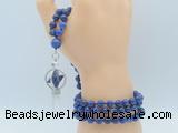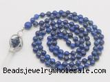 Details: Hand-knotted lapis lazuli mala necklaces: 108 8mm/10mm round lapis lazuli gemstone beads with 1 12mm guru bead and lapis lazuli & white crystal pendant (you can choose different pendants) Item: GMN1563 Material: No.1(8mm: 108 8mm lapis lazuli beads, 12mm guru bead And lapis lazuli & white crystal pendant No.2(10mm: 108 10mm lapis lazuli beads, 12mm guru bead And lapis lazuli & white crystal pendant Color: See image Length (inch): Necklace length: No.1(8mm: approx 37 - 40 inches (Not including guru bead & pendant) No.2(10mm: approx 46 - 50 inches (Not including guru bead & pendant) Pendants: #1 - #8: approx 20*50mm – 22*55mm #9 - #23: approx 16*50mm – 16*55mm #24 - #30: approx 17*55mm – 17*58mm #31 - #39: approx 25*68mm – 25*70mm Quantity Discount Pricing: 1 – 4: None 5 – 49: 95% 50 – 99: 90% 100+: 85% This mala is available in both 8mm and 10mm beads, The listed price is for 1 piece 8mm mala necklace