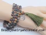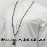 | Catalog » Jewelry » Gemstone Jewelry » Hand-Knotted Mala Necklaces » 8mm Matte 108 Mala Necklaces » 8mm beads with tassel & charm » GMN2008 |