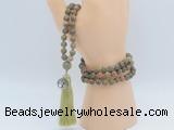 | Catalog » Jewelry » Gemstone Jewelry » Hand-Knotted Mala Necklaces » 8mm Matte 108 Mala Necklaces » 8mm beads with tassel & charm » GMN2032 |