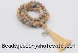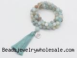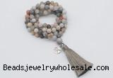 | Catalog » Jewelry » Gemstone Jewelry » Hand-Knotted Mala Necklaces » 8mm Matte 108 Mala Necklaces » 8mm beads with tassel & charm » GMN2036 |
