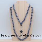 Details: Hand-knotted sodalite mala necklaces: 108 8mm/10mm round matte sodalite beads with 1 12mm guru bead and lapis lazuli & white crystal pendant (you can choose different pendants) Item: GMN2621 Material: No.1(8mm: 108 8mm matte lapis lazuli beads, 12mm guru bead And lapis lazuli & white crystal pendant No.2(10mm: 108 10mm matte lapis lazuli beads, 12mm guru bead And lapis lazuli & white crystal pendant Color: See image Length (inch): Necklace length: No.1(8mm: approx 37 - 40 inches (Not including guru bead & pendant) No.2(10mm: approx 46 - 50 inches (Not including guru bead & pendant) Pendants: #1 - #8: approx 20*50mm – 22*55mm #9 - #23: approx 16*50mm – 16*55mm #24 - #30: approx 17*55mm – 17*58mm #31 - #39: approx 25*68mm – 25*70mm Quantity Discount Pricing: 1 – 4: None 5 – 49: 95% 50 – 99: 90% 100+: 85% This mala is available in both 8mm and 10mm beads, The listed price is for 1 piece 8mm mala necklace