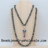 Details: Hand-knotted jasper mala necklaces: 108 8mm/10mm round matte kambaba jasper gemstone beads with 1 12mm rose quartz guru bead and green aventurine pendant (you can choose different pendants) Item: GMN2629 Material: No.1(8mm: 108 8mm matte kambaba jasper beads, 12mm rose quartz guru bead & rose quartz pendant No.2(10mm: 108 10mm matte kambaba jasper beads, 12mm rose quartz guru bead & rose quartz pendant Color: See image Length (inch): Necklace length: No.1(8mm: approx 37 - 40 inches (Not including guru bead & pendant) No.2(10mm: approx 46 - 50 inches (Not including guru bead & pendant) Pendants: #1 - #8: approx 20*50mm – 22*55mm #9 - #23: approx 16*50mm – 16*55mm #24 - #30: approx 17*55mm – 17*58mm #31 - #39: approx 25*68mm – 25*70mm Quantity Discount Pricing: 1 – 4: None 5 – 49: 95% 50 – 99: 90% 100+: 85% This mala is available in both 8mm and 10mm beads, The listed price is for 1 piece 8mm mala necklace