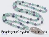 Details: Hand-knotted fluorite mala necklaces: 108 8mm/10mm round fluorite beads with smoky quartz pendant/12mm guru bead and smoky quartz pendant (you can choose different pendants, but there will be tiny different in shape & color, we will make the jewelry randomly according to our stock) Item: GMN4003 Material: No.1: 8mm: 108 8mm fluorite beads & smoky quartz pendant 10mm: 108 10mm fluorite beads & smoky quartz pendant No.2: 8mm: 108 8mm fluorite beads, 12mm guru bead & smoky quartz pendant 10mm: 108 10mm fluorite beads, 12mm guru bead & smoky quartz pendant Color: See image Length (inch): Necklace length: 8mm: approx 37 - 40 inches (Not including guru bead & pendant) 10mm: approx 46 - 50 inches (Not including guru bead & pendant) Pendants: approx 18*50mm – 25*60mm Quantity Discount Pricing: 1 – 4: None 5 – 49: 95% 50 – 99: 90% 100+: 85% This mala is available in both 8mm and 10mm beads, The listed price is for 1 piece 8mm mala necklace