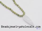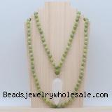 Details: Hand-knotted jade mala necklaces: 108 8mm/10mm round China jade beads with white crystal pendant/12mm guru bead and white crystal pendant (you can choose different pendants, but there will be tiny different in shape & color, we will make the jewelry randomly according to our stock) Item: GMN4018 Material: No.1: 8mm: 108 8mm China jade beads & white crystal pendant 10mm: 108 10mm China jade beads & white crystal pendant No.2: 8mm: 108 8mm China jade beads, 12mm guru bead & white crystal pendant 10mm: 108 10mm China jade beads, 12mm guru bead & white crystal pendant Color: See image Length (inch): Necklace length: 8mm: approx 37 - 40 inches (Not including guru bead & pendant) 10mm: approx 46 - 50 inches (Not including guru bead & pendant) Pendants: approx 18*50mm – 25*60mm Quantity Discount Pricing: 1 – 4: None 5 – 49: 95% 50 – 99: 90% 100+: 85% This mala is available in both 8mm and 10mm beads, The listed price is for 1 piece 8mm mala necklace