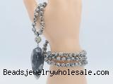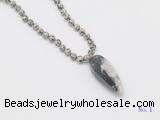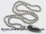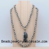 Details: Hand-knotted jasper mala necklaces: 108 8mm/10mm round dalmatian jasper beads with black & white jasper pendant/12mm guru bead and black & white jasper jasper pendant (you can choose different pendants, but there will be tiny different in shape & color, we will make the jewelry randomly according to our stock) Item: GMN4021 Material: No.1: 8mm: 108 8mm dalmatian jasper beads And black & white jasper pendant 10mm: 108 10mm dalmatian jasper beads And black & white jasper pendant No.2: 8mm: 108 8mm dalmatian jasper beads, 12mm guru bead And black & white jasper pendant 10mm: 108 10mm dalmatian jasper beads, 12mm guru bead And black & white jasper pendant Color: See image Length (inch): Necklace length: 8mm: approx 37 - 40 inches (Not including guru bead & pendant) 10mm: approx 46 - 50 inches (Not including guru bead & pendant) Pendants: approx 18*50mm – 25*60mm Quantity Discount Pricing: 1 – 4: None 5 – 49: 95% 50 – 99: 90% 100+: 85% This mala is available in both 8mm and 10mm beads, The listed price is for 1 piece 8mm mala necklace