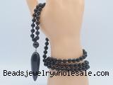 Details: Hand-knotted tourmaline mala necklaces: 108 8mm/10mm round black tourmaline beads with blue goldstone pendant/12mm guru bead and blue goldstone pendant (you can choose different pendants, but there will be tiny different in shape & color, we will make the jewelry randomly according to our stock) Item: GMN4032 Material: No.1: 8mm: 108 8mm black tourmaline beads & blue goldstone pendant 10mm: 108 10mm black tourmaline beads & blue goldstone pendant No.2: 8mm: 108 8mm black tourmaline beads, 12mm guru bead & blue goldstone pendant 10mm: 108 10mm black tourmaline beads, 12mm guru bead & blue goldstone pendant Color: See image Length (inch): Necklace length: 8mm: approx 37 - 40 inches (Not including guru bead & pendant) 10mm: approx 46 - 50 inches (Not including guru bead & pendant) Pendants: approx 18*50mm – 25*60mm Quantity Discount Pricing: 1 – 4: None 5 – 49: 95% 50 – 99: 90% 100+: 85% This mala is available in both 8mm and 10mm beads, The listed price is for 1 piece 8mm mala necklace
