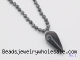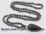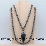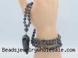 Details: Hand-knotted labradorite mala necklaces: 108 8mm/10mm round black labradorite beads with black banded agate pendant/12mm guru bead and black banded agate pendant (you can choose different pendants, but there will be tiny different in shape & color, we will make the jewelry randomly according to our stock) Item: GMN4034 Material: No.1: 8mm: 108 8mm black labradorite beads & black banded agate pendant 10mm: 108 10mm black labradorite beads & black banded agate pendant No.2: 8mm: 108 8mm black labradorite beads, 12mm guru bead & black banded agate pendant 10mm: 108 10mm black labradorite beads, 12mm guru bead & black banded agate pendant Color: See image Length (inch): Necklace length: 8mm: approx 37 - 40 inches (Not including guru bead & pendant) 10mm: approx 46 - 50 inches (Not including guru bead & pendant) Pendants: approx 18*50mm – 25*60mm Quantity Discount Pricing: 1 – 4: None 5 – 49: 95% 50 – 99: 90% 100+: 85% This mala is available in both 8mm and 10mm beads, The listed price is for 1 piece 8mm mala necklace