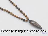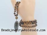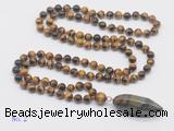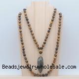 Details: Hand-knotted tiger eye mala necklaces: 108 8mm/10mm round yellow tiger eye beads with iron tiger pendant/12mm guru bead and iron tiger pendant (you can choose different pendants, but there will be tiny different in shape & color, we will make the jewelry randomly according to our stock) Item: GMN4039 Material: No.1: 8mm: 108 8mm yellow tiger eye beads & iron tiger pendant 10mm: 108 10mm yellow tiger eye beads & iron tiger pendant No.2: 8mm: 108 8mm yellow tiger eye beads, 12mm guru bead & iron tiger pendant 10mm: 108 10mm yellow tiger eye beads, 12mm guru bead & iron tiger pendant Color: See image Length (inch): Necklace length: 8mm: approx 37 - 40 inches (Not including guru bead & pendant) 10mm: approx 46 - 50 inches (Not including guru bead & pendant) Pendants: approx 18*50mm – 25*60mm Quantity Discount Pricing: 1 – 4: None 5 – 49: 95% 50 – 99: 90% 100+: 85% This mala is available in both 8mm and 10mm beads, The listed price is for 1 piece 8mm mala necklace